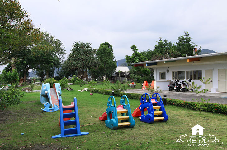 寬大象長長的鼻子,溜下去的那刻,煩惱也通通的溜走。盪著鞦韆,想起的盡是孩提時的美好時光,原來時間會帶來外表的老去,但我們仍可以保持著一顆赤子之心。菜爺爺民宿旁保留了大面積的草地,放上了幾樣孩子們喜愛的遊樂設施,讓孩子們可與新交的朋友在那盡情嬉戲,而不是窩在房間看電視;大人可在旁品茶聊天,或與菜爺爺一同討論之後的行程。