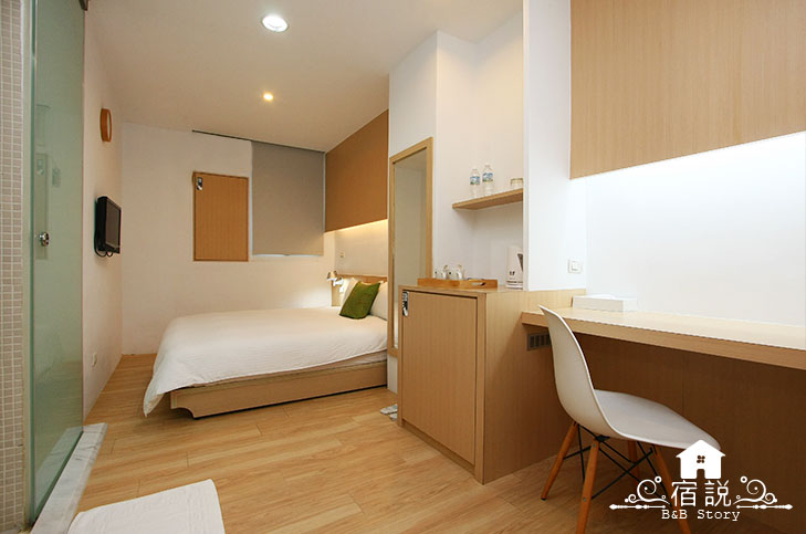 穿在灰與白的休憩空間裡,運用得當的木色,將房間整體調和的較為和緩。儘管房間的擺飾不多,但該有的機能設備一應具全。你可以坐臥在柔軟潔淨的大床上,興奮的討論明天的計畫和今日的趣事;你可以在床邊的小几上,為日記本添上精彩的一頁故事。在柔和的燈光下,我們享受在一天的悠閒後,徹底的放鬆,靜謐而安穩。
